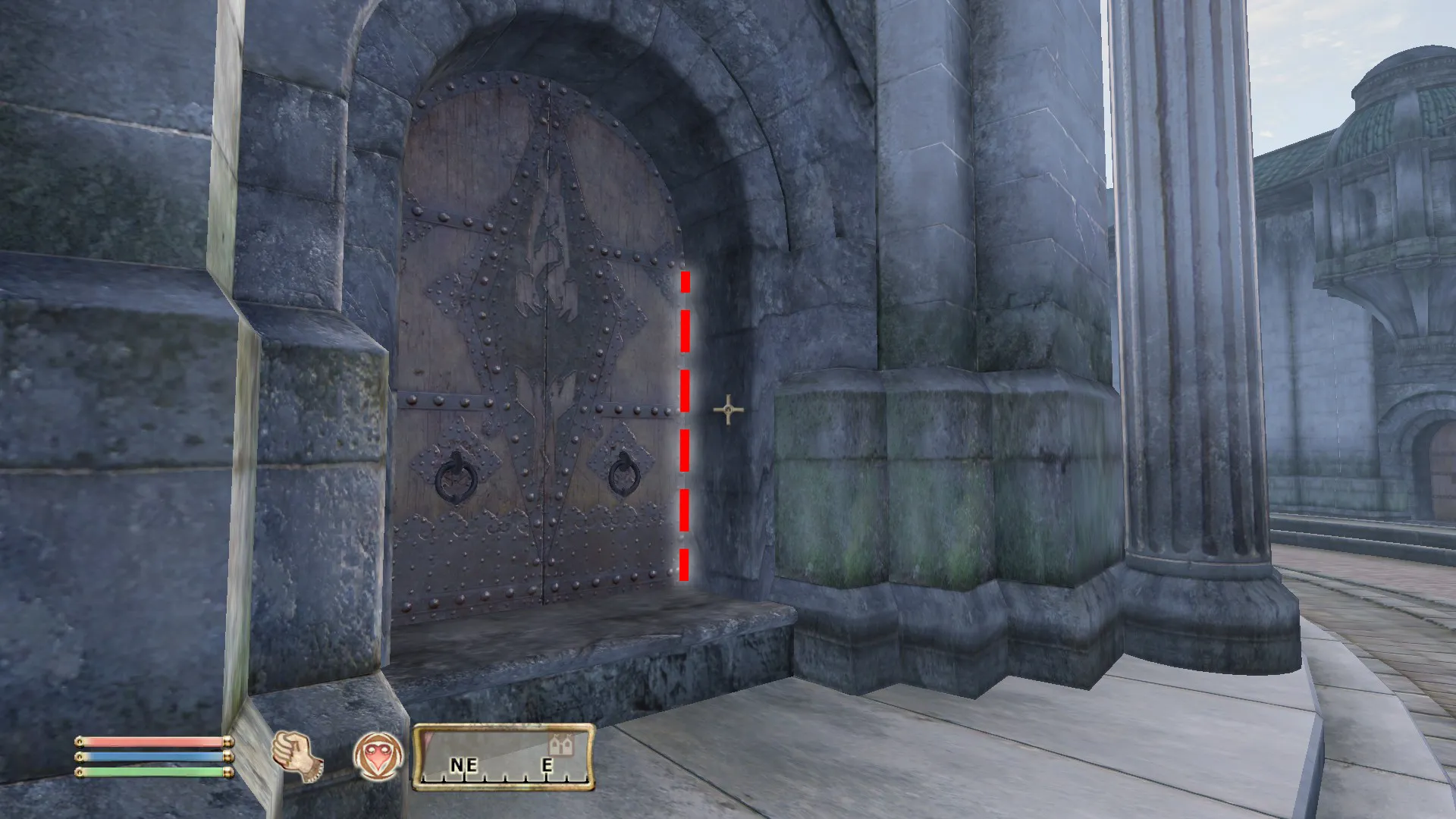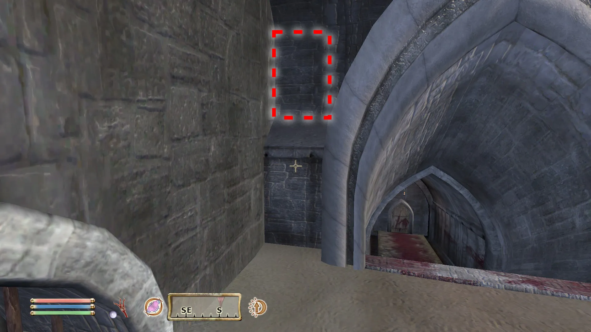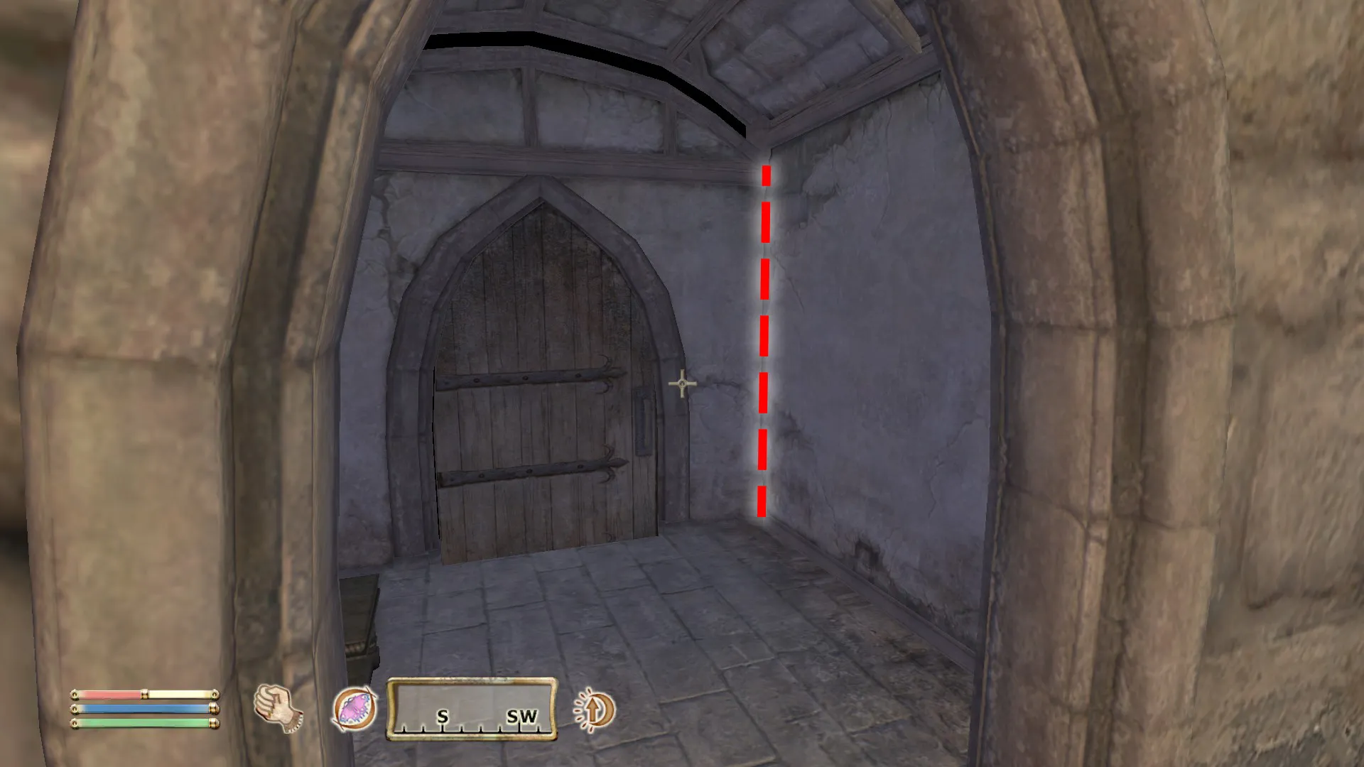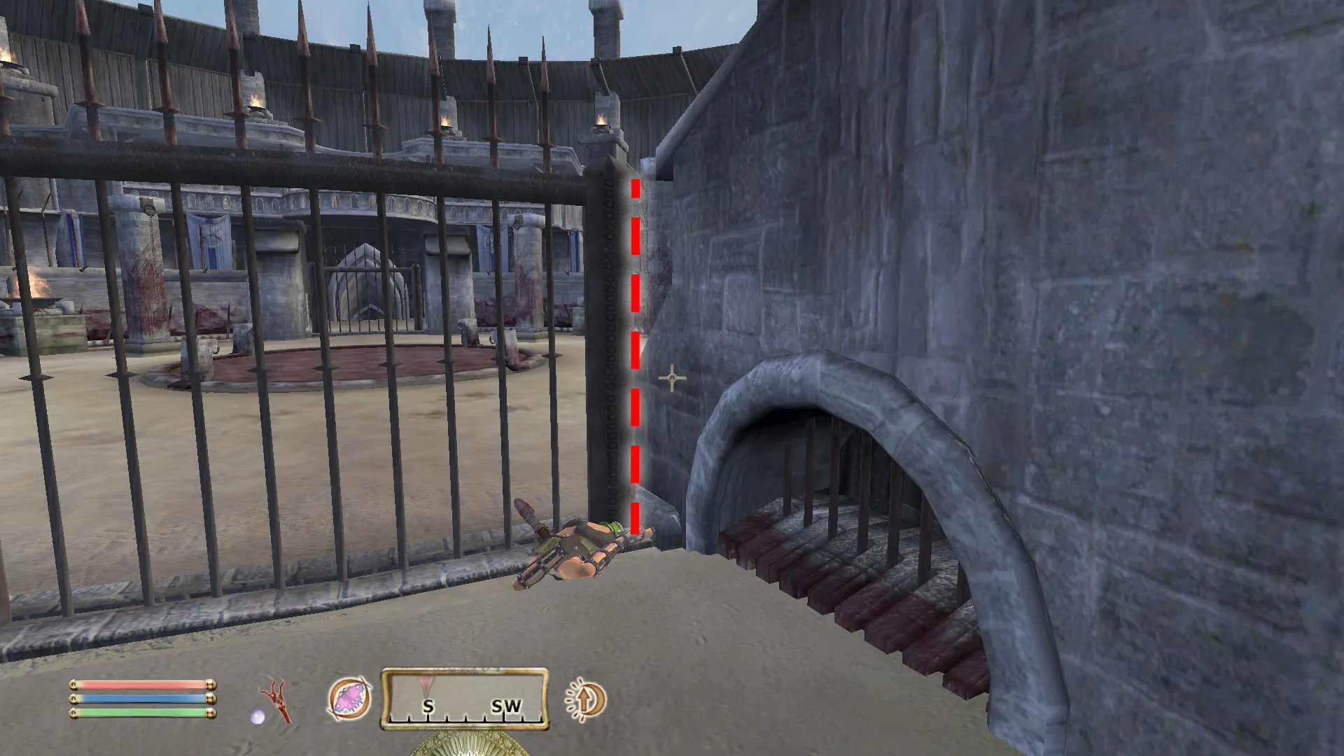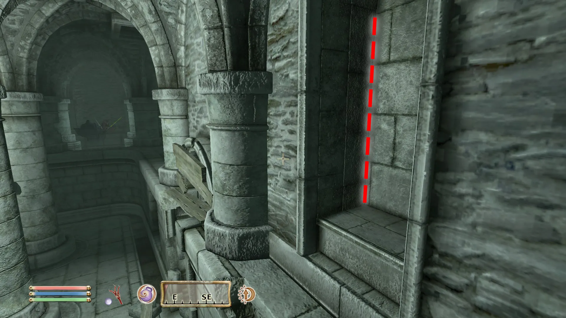 - Quickload, then Save Clip through the right front edge of the NE archway.