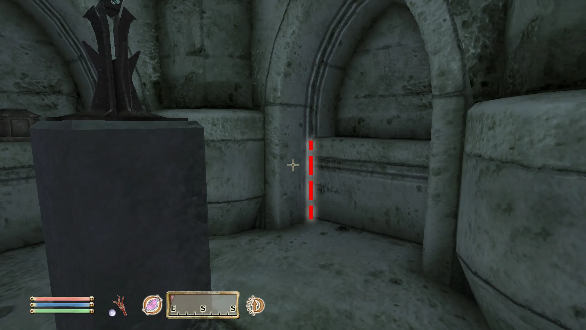 - Jump up into the east archway and Save Clip through the seam between the two walls. Continue to run east after you clip until the black box is off the top of the screen, then wait until you Void Warp.